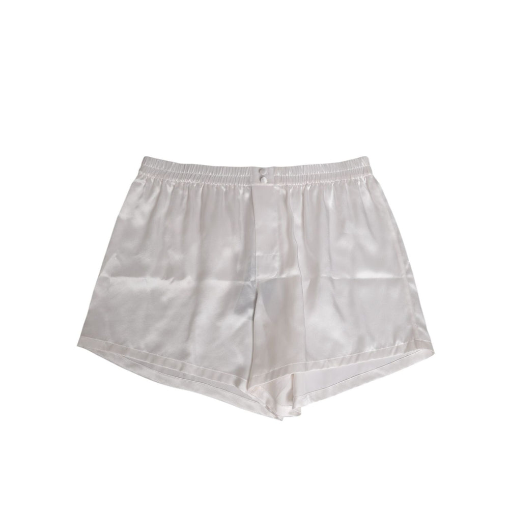Dolce & Gabbana White Silk Satin Elastic Men Boxer Short Swimwear