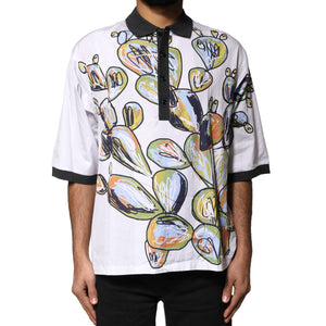 Dolce & Gabbana White Sketch Print Oversized Mens Polo T-shirt