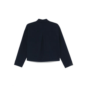 oxford blue concealed front button fastening inverted pleat logo patch to the front cropped Striped cotton shirt Size and Fit - This piece fits true to size. We recommend you get your regular size. Model is 1,75m / 5ft 8in wearing size S