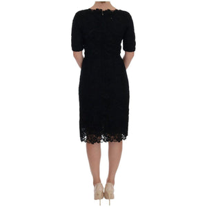 Dolce & Gabbana Black Floral Ricamo Sheath Dress
