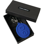 Dolce & Gabbana Blue Rubber DG Logo Silver Brass Metal Keyring Keychain