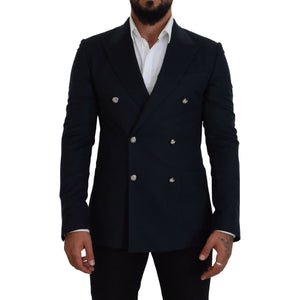 Dolce & Gabbana Blue Double Breasted Formal Coat Blazer