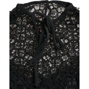 Dolce & Gabbana Black Floral Lace Short Sleeves Blouse Top