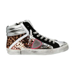 Philippe Model Elegant Gray Leather Sneakers with Sequin Details