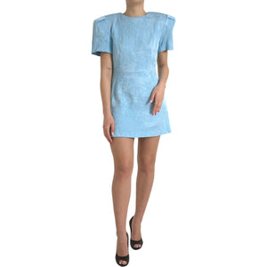 Dolce & Gabbana Light Blue Floral Jacquard Puff Sleeve Mini Dress