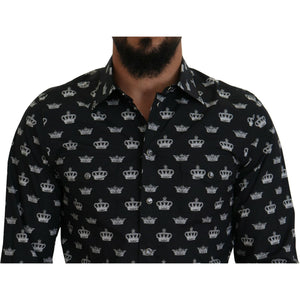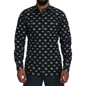 Dolce & Gabbana Black Crown Print GOLD Slim Shirt