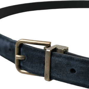 Dolce & Gabbana Blue Suede Leather Gold Metal Buckle Belt