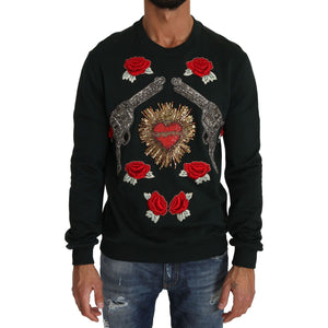 Absolutely stunning, 100% Authentic, brand new with tags Dolce & Gabbana green cotton Red Crystal Heart Roses embroidered Gun pullover sweater.
