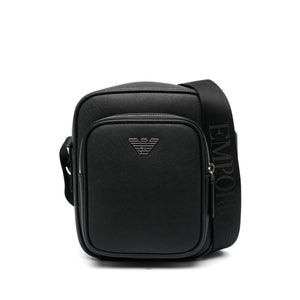 logo-plaque leather messenger bag from EMPORIO ARMANI featuring black, calf leather, logo plaque, top zip fastening, adjustable shoulder strap, front zip-fastening pouch pocket and main compartment. Logo crossbody bag Size and Fit - Width 6,69 in / 17 cm Height 8,27 in / 21 cm Depth 4,33 in / 11 cm Strap 29,53 in / 75 cm