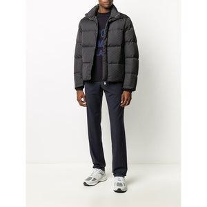 black quilted monogram print two front welt pockets high neck long sleeves concealed front fastening Nylon short down jacket