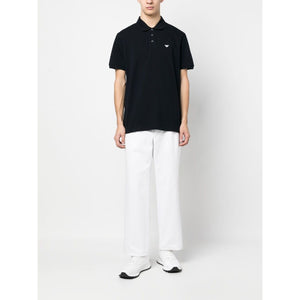 Embroidered chest logo polo shirt from EMPORIO ARMANI featuring embroidered logo at the chest, polo collar, front button placket, short sleeves, straight hem, navy blue and cotton. Logo cotton polo shirt Size and Fit - This piece fits true to size. We recommend you get your regular size. Model is 1,84m / 6ft 1in wearing size M