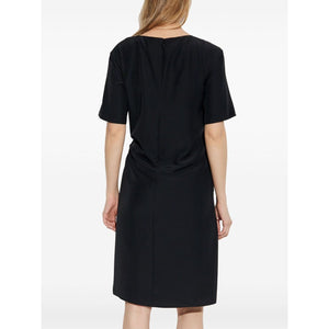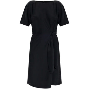 black concealed rear zip fastening tied waist round neck short sleeves Midi dress Size and Fit - This piece fits true to size. We recommend you get your regular size. Model is 1,75m / 5ft 8in wearing size 40 (IT)