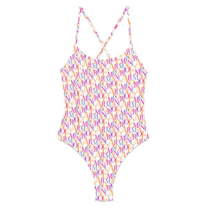 Be mindful to try on swimwear over your own garments. Allover logo swimsuit Size and Fit - This piece fits true to size. We recommend you get your regular size. Model is 1,75m / 5ft 8in wearing size S