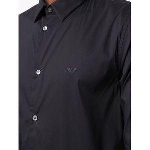 Navy blue cotton blend logo patch at the chest classic collar long sleeves curved hem. Cotton shirt Size and Fit - This piece fits true to size. We recommend you get your regular size. Model is 1,84m / 6ft 1in wearing size M