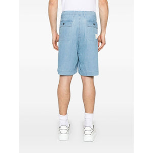 cerulean blue concealed fly and button fastening belt loops two side inset pockets two rear button-fastening pockets Organic cotton denim bermuda shorts Size and Fit - This piece fits true to size. We recommend you get your regular size. Model is 1,84m / 6ft 1in wearing size 48 (IT)