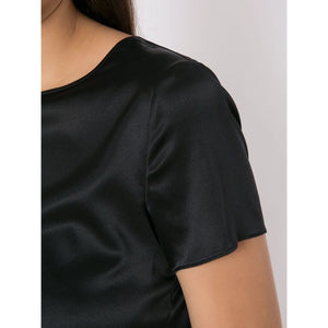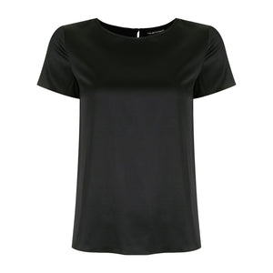 Black stretch-silk round neck short sleeves relaxed fit straight hem. Silk top Size and Fit - This piece fits true to size. We recommend you get your regular size. Model is 1,75m / 5ft 8in wearing size 40 (IT)