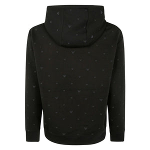 black drawstring hood long sleeves ribbed cuffs and hem straight hem Allover logo cotton sweatshirt Size and Fit - This piece fits true to size. We recommend you get your regular size. Model is 1,84m / 6ft 1in wearing size M