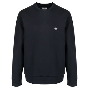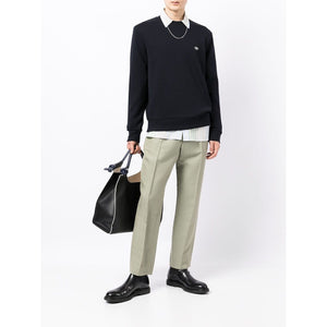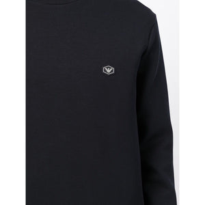 navy blue cotton ribbed detailing logo patch at the chest round neck long sleeves Cotton crewneck sweatshirt