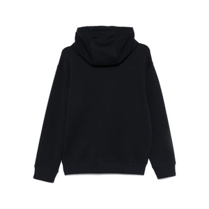 midnight blue drawstring hood ribbed cuffs and hem drop shoulder Logo cotton hoodie Size and Fit - This piece fits true to size. We recommend you get your regular size. Model is 1,84m / 6ft 1in wearing size M