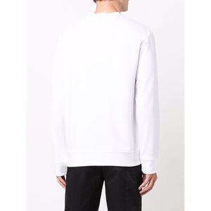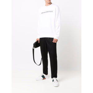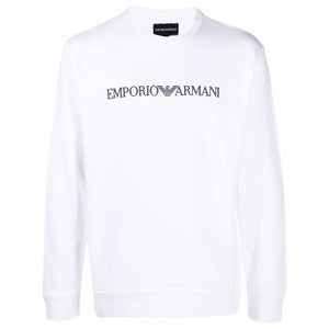 White/black modal-cotton blend logo-print crew-neck sweatshirt from EMPORIO ARMANI featuring jersey fleece, logo print to the front, crew neck, long sleeves and straight hem Logo cotton sweatshirt Size and Fit - This piece fits true to size. We recommend you get your regular size. Model is 1,84m / 6ft 1in wearing size M