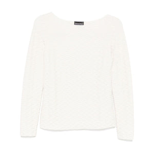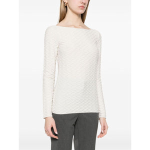 white crew neck long sleeves finished edge Jacquard boat-neck top Size and Fit - This piece fits true to size. We recommend you get your regular size. Model is 1,75m / 5ft 8in wearing size S