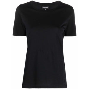 Black cotton round-neck cotton T-shirt from EMPORIO ARMANI featuring round neck, short sleeves and straight hem. Logo cotton t-shirt Size and Fit - This piece fits true to size. We recommend you get your regular size. Model is 1,75m / 5ft 8in wearing size 40 (IT)