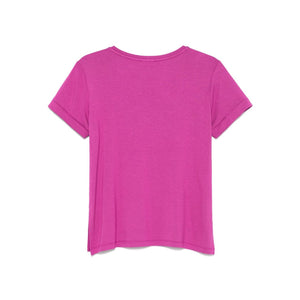 dark pink crew neck short sleeves side slits straight hem Logo t-shirt Size and Fit - This piece fits true to size. We recommend you get your regular size. Model is 1,75m / 5ft 8in wearing size S