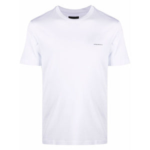 Logo-print crewneck T-shirt from EMPORIO ARMANI featuring white, lyocell, cotton, logo print at the chest, crew neck, short sleeves and straight hem. Logo t-shirt Size and Fit - This piece fits true to size. We recommend you get your regular size. Model is 1,84m / 6ft 1in wearing size M