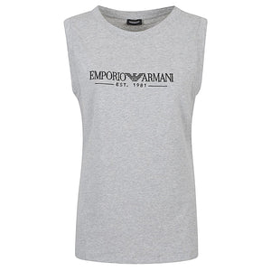 Gray top, round neck, EMPORIO ARMANI logo, straight hem. Logo cotton tank top Size and Fit - This piece fits true to size. We recommend you get your regular size. Model is 1,75m / 5ft 8in wearing size S