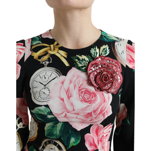 Gorgeous brand new with tags, 100% Authentic Dolce & Gabbana A-line dress. Fastened at the back with a zip and a hook. Decorated with a colorful rose print and floral embellishments.