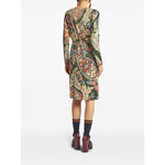 green/multicolour abstract pattern print round neck belted waist long sleeves straight hem Printed midi dress Size and Fit - This piece fits true to size. We recommend you get your regular size. Model is 1,75m / 5ft 8in wearing size 40 (IT)