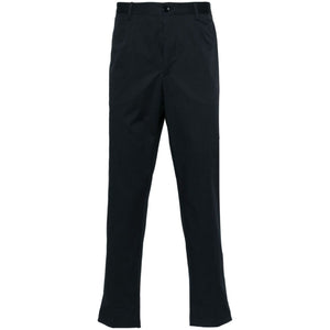 navy blue stretch-cotton slim cut tapered leg belt loops two diagonal pockets to the sides two rear button-fastening pockets front button and zip fastening Cotton trousers Size and Fit - This piece fits true to size. We recommend you get your regular size. Model is 1,84m / 6ft 1in wearing size 48 (IT)