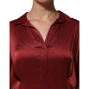 Gorgeous brand new with tags, 100% Authentic FABIANA FILIPPI women’s dress.This elegant satin-finish dress comes in a rich burgundy shade and features a collared neckline, long sleeves, and a flowy high-low midi silhouette. Crafted from a luxurious acetate and viscose blend, it offers a sophisticated drape and soft sheen.