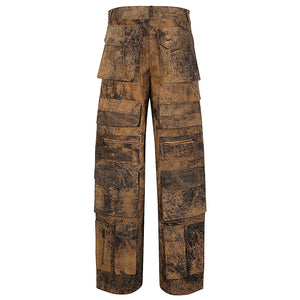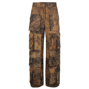 Camouflage trousers, cargo, zip closure and pressure button, multitaches. Leather cargo trousers Size and Fit - This piece fits true to size. We recommend you get your regular size. Model is 1,75m / 5ft 8in wearing size S