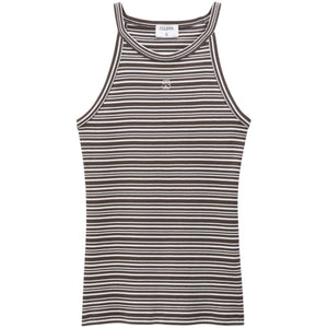 coffee brown/chalk white organic cotton fine ribbed horizontal stripe print embroidered monogram to the front crew neck slip-on style halterneck racerback straight hem This item is made from at least 50% organic materials. Learn more about what makes a product Conscious on our Conscious Criteria page Striped tank top Size and Fit - This piece fits true to size. We recommend you get your regular size. Model is 1,75m / 5ft 8in wearing size S