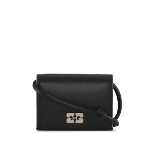 black recycled leather debossed logo to the rear logo plaque knot detailing foldover top single shoulder strap main compartment This item is made from at least 50% recycled or upcycled materials. For recycled synthetic clothing products, we highly recommend using a microfibre-catching washing bag to ensure that no microplastics that can pollute water are released in the process. Learn more about what makes a product Conscious on our Conscious Criteria page Mini crossbody bag Size and Fit - Width: 10 cm Height: 7 cm Depth: 2.5 cm Shoulder strap 108 cm