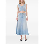 light blue cotton washed denim mid-rise belt loops front button and zip fastening classic five pockets A-line Organic cotton denim skirt Size and Fit - This piece fits true to size. We recommend you get your regular size. Model is 1,75m / 5ft 8in wearing size 36 (FR)