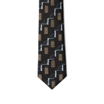 Black silk tie by Giorgio Armani featuring multicolor geometric patterns.