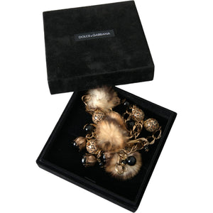 Dolce & Gabbana Gold Brass Leopard Fur Pearl Collier Chain Belt