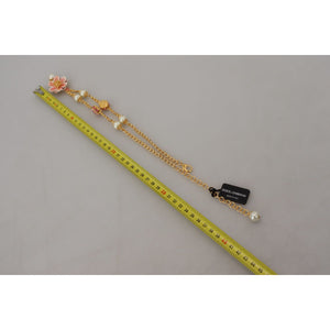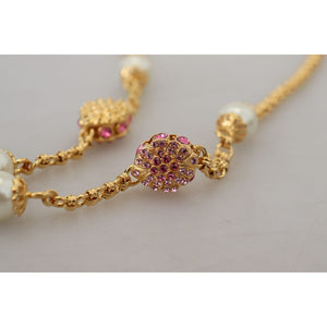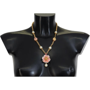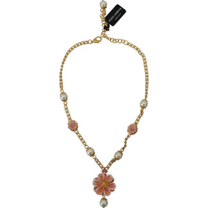Dolce & Gabbana Gold Tone Floral Crystals Pink Embellished Necklace