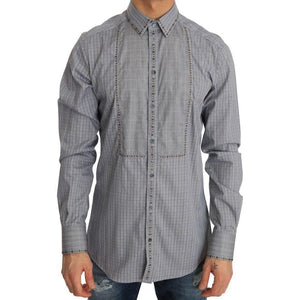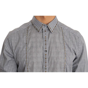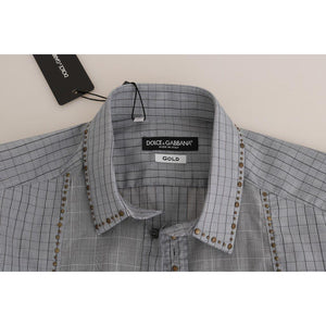 Dolce & Gabbana Gray Check GOLD Cotton Slim Fit Shirt