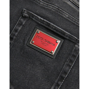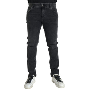 Dolce & Gabbana Gray Cotton Stretch Skinny Denim Logo Jeans