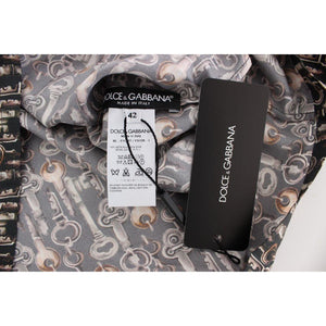 Dolce & Gabbana Gray Gold Key Print Silk Blouse T-shirt