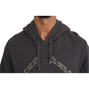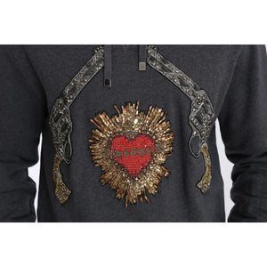 Dolce & Gabbana Gray Hooded Red Crystal Heart Gun Sweater