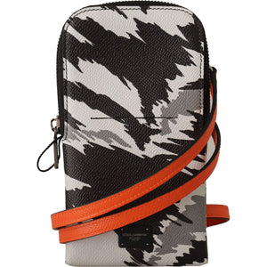 Dolce & Gabbana Gray Leather Cross Body Neck Strap Card Pocket Wallet