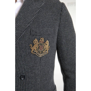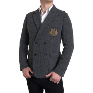 Dolce & Gabbana Gray Logo Embroidery Double Breasted Blazer