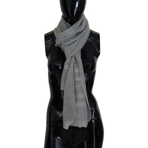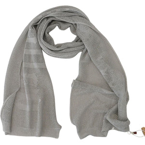 John Galliano Gray Logo Knitted Neck Wrap Shawl Foulard Scarf