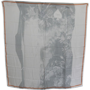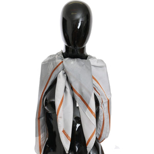 Costume National Gray Red Silk Shawl Foulard Wrap Scarf