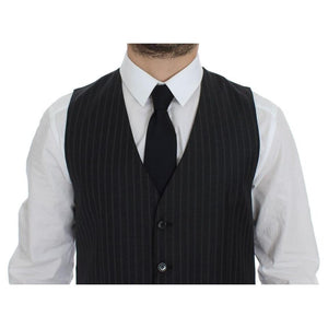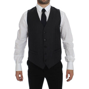 Dolce & Gabbana Gray Striped Wool Logo Vest Gilet Weste