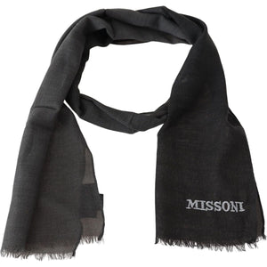 Missoni Gray Wool Unisex Neck Wrap Shawl Fringes Logo Scarf